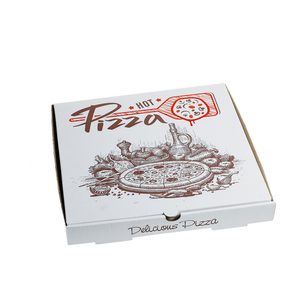 Paper box used for pizza and pizzeria products. Temperature range between -40° C to +80° C